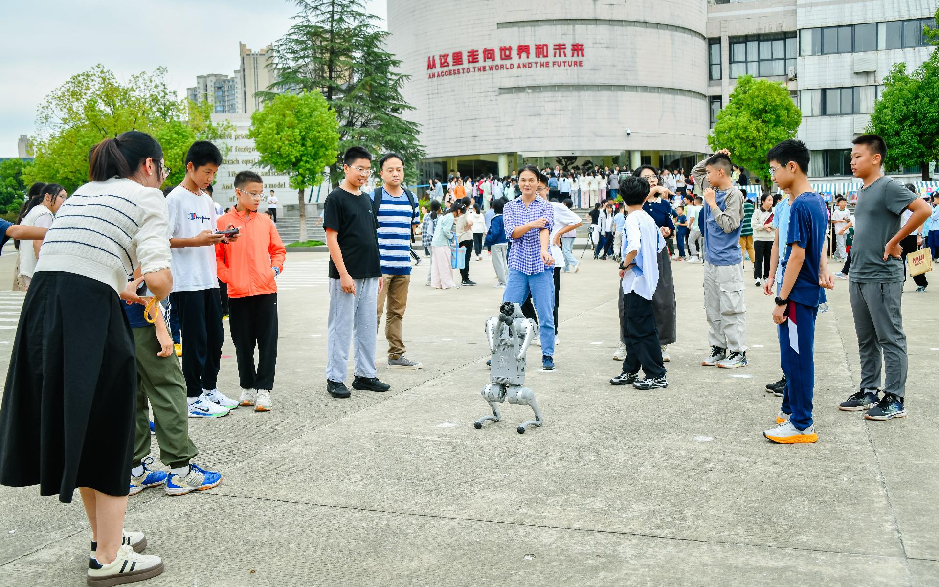 科技类社团以科技与思维的碰撞,点燃了智慧的火花。“智创未来”系列社团集中展现了学校前沿探索:3D创意设计社与机器人社团聚焦数字制造与人工智能,AI与C++算法社引领编程思维;物理社团、化学研学社在专业实验室中探寻科学奥秘;“数趣探索”下,围棋社、象棋社与悦读数学社带来逻辑与思维的乐趣。机器人社团带来的机器狗,在学生们的操作下,做出各种动作,引发人群的一阵阵喝彩。