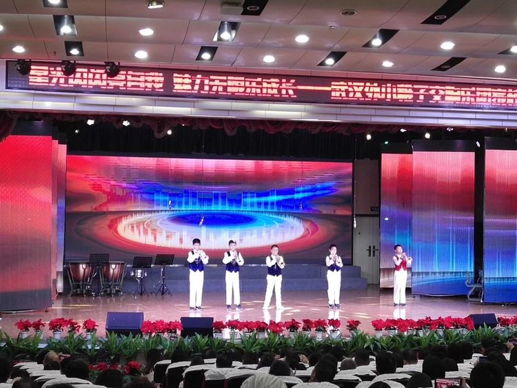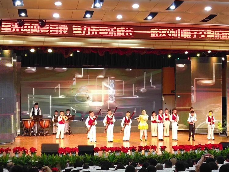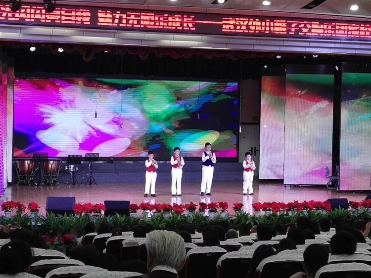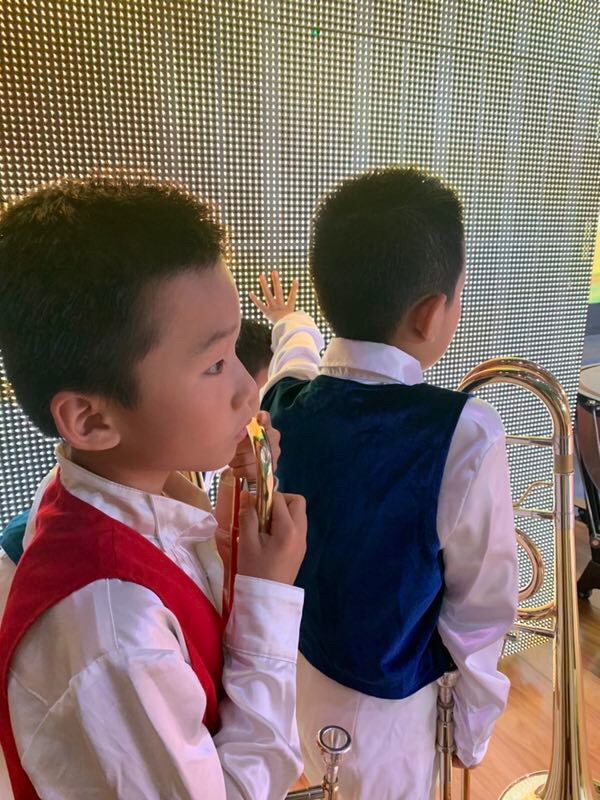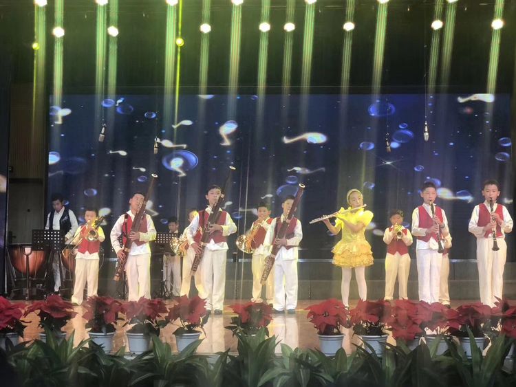 音乐会的最后是管乐基础班带来的《世界名曲联奏》和弦乐基础班演奏的《金蛇狂舞》。别看基础班的孩子学习时间短,舞台上完美的呈现是对他们努力的最好证明。