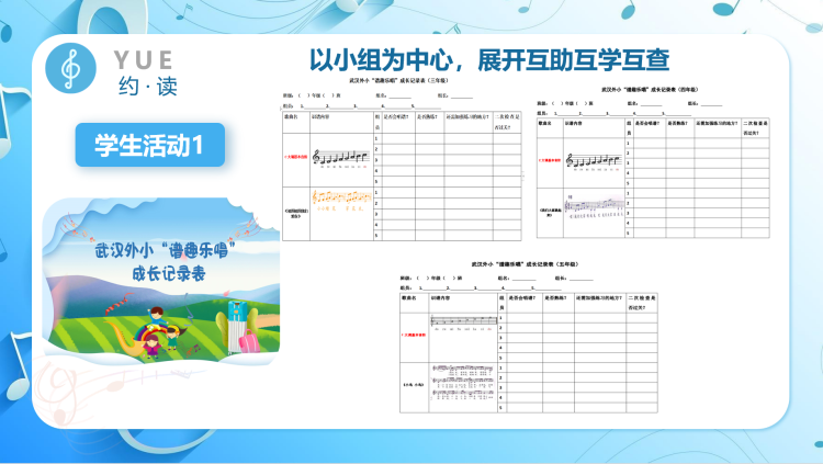 在形式多样的识谱教学中,借助小组为中心的方式,人人落实。