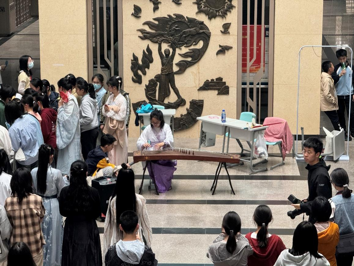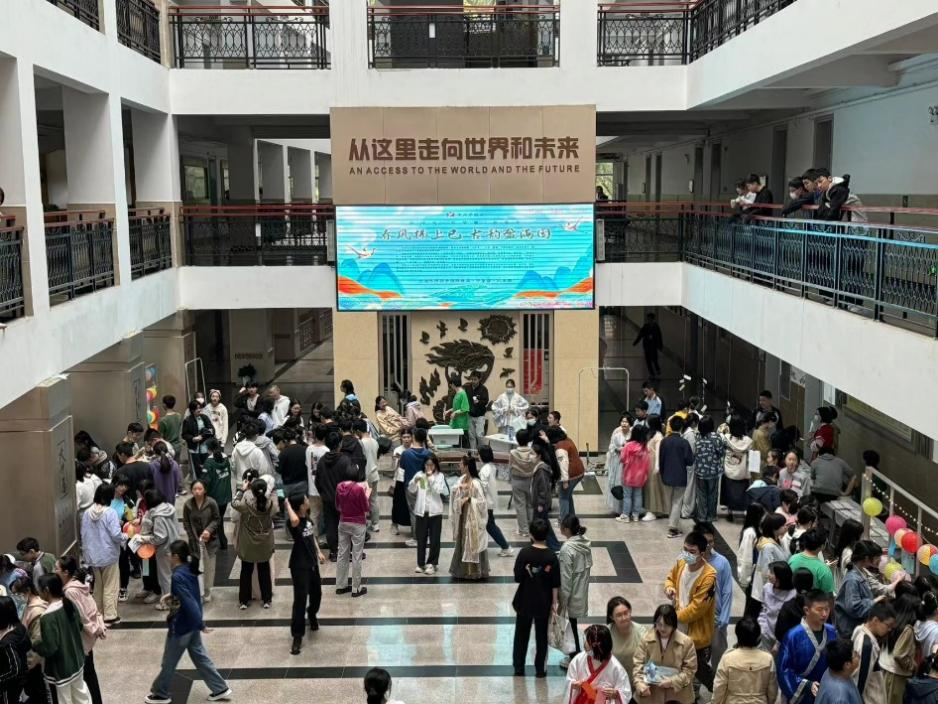 今年4月份我校第一次组织“中国华服日”活动,主题为“春风拂上巳,古韵盈满园”,鼓励学生传承华服文化,展青春风采。此次活动在学校政教处的领导下,学生会、社团联策划举办,于4月11日社团课时间在教学楼一楼大厅启动,以全校师生喜闻乐见的灯谜与投壶等形式,聚焦中优秀传统文化,呈现出一场独属于武汉外校的文化盛宴。