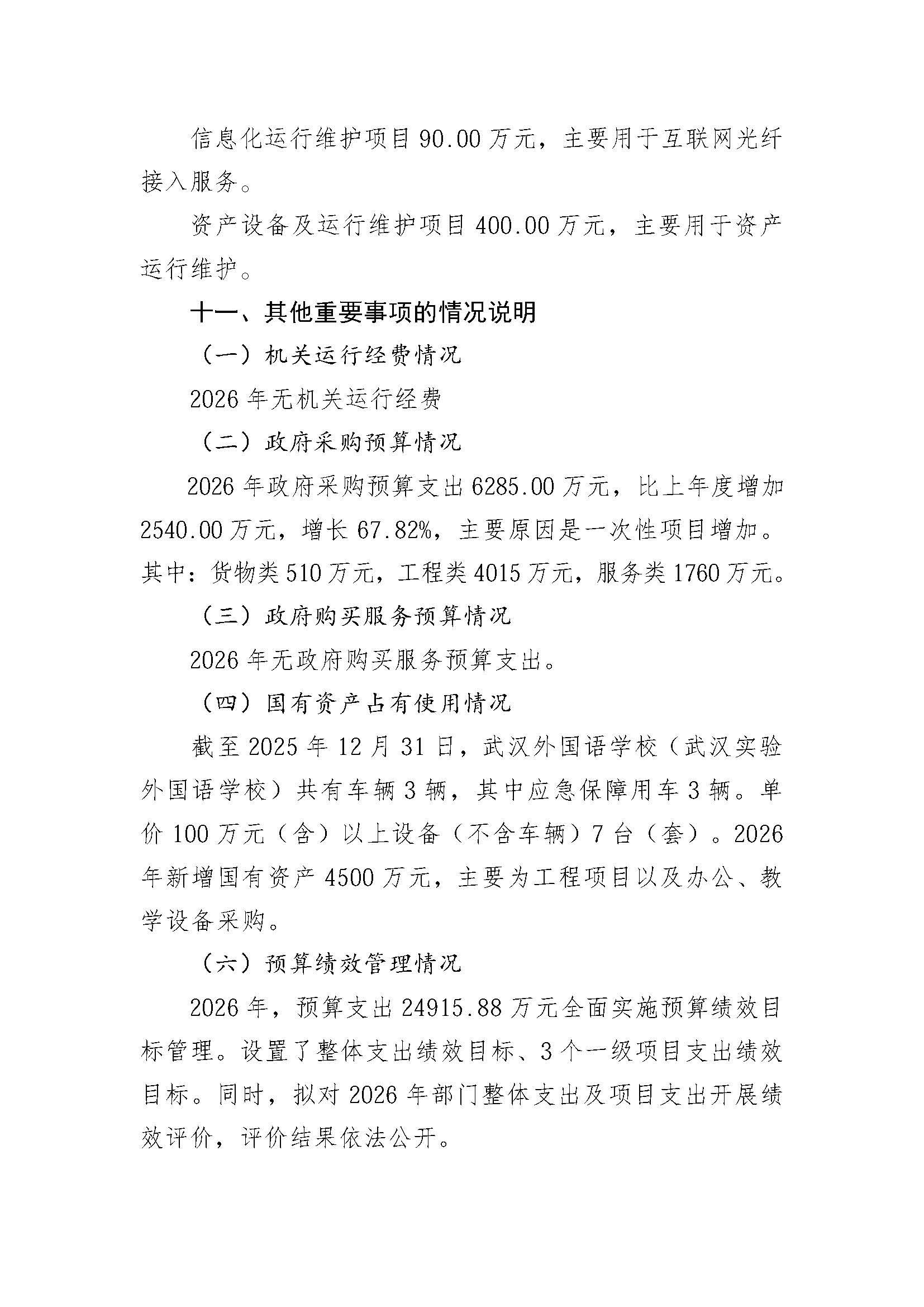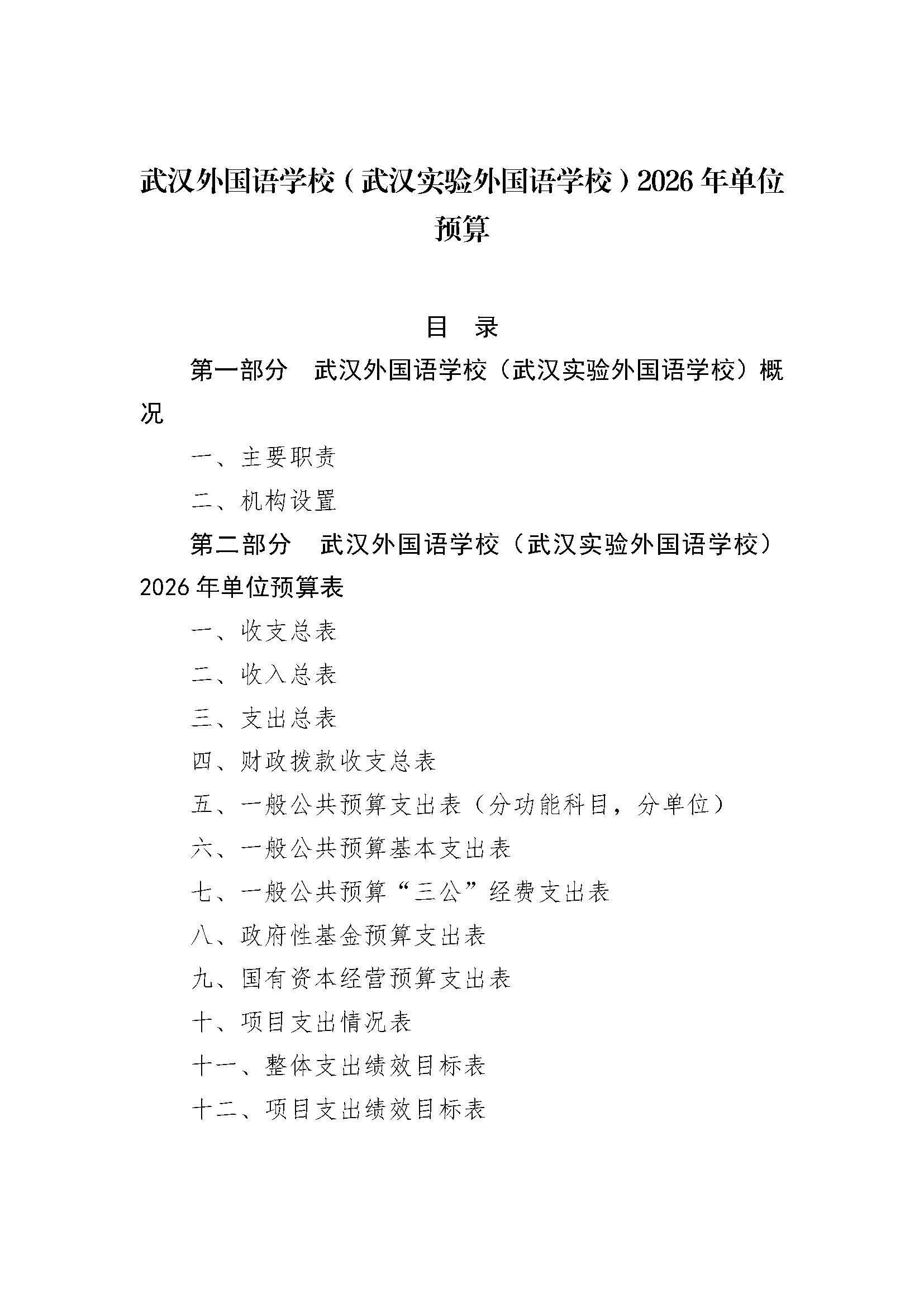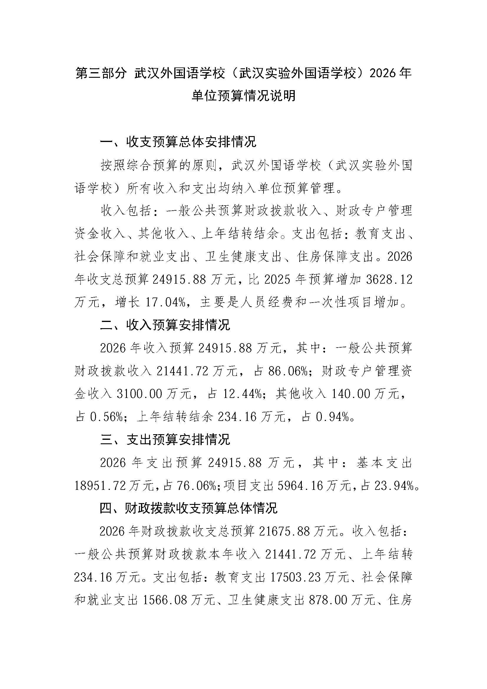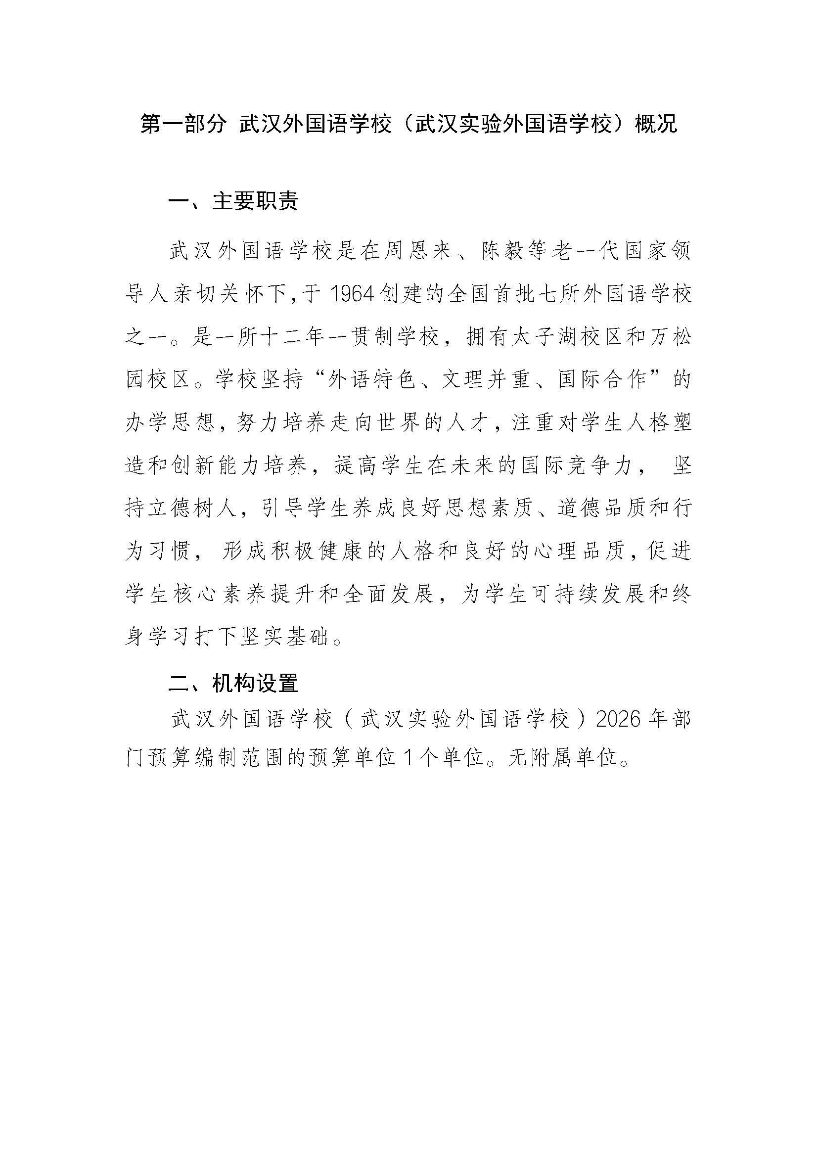 武汉外国语学校(武汉实验外国语学校)2026 年单位预算