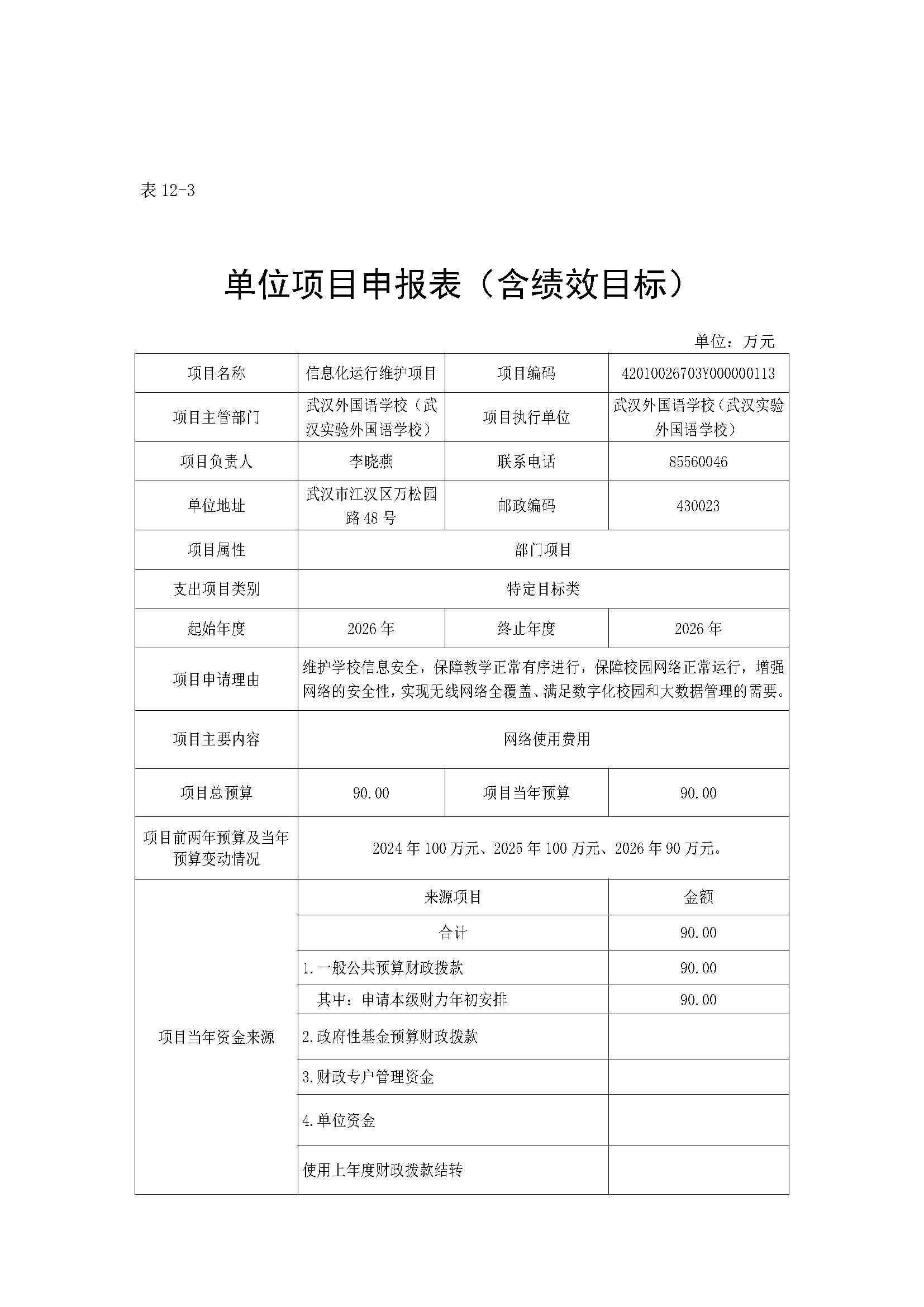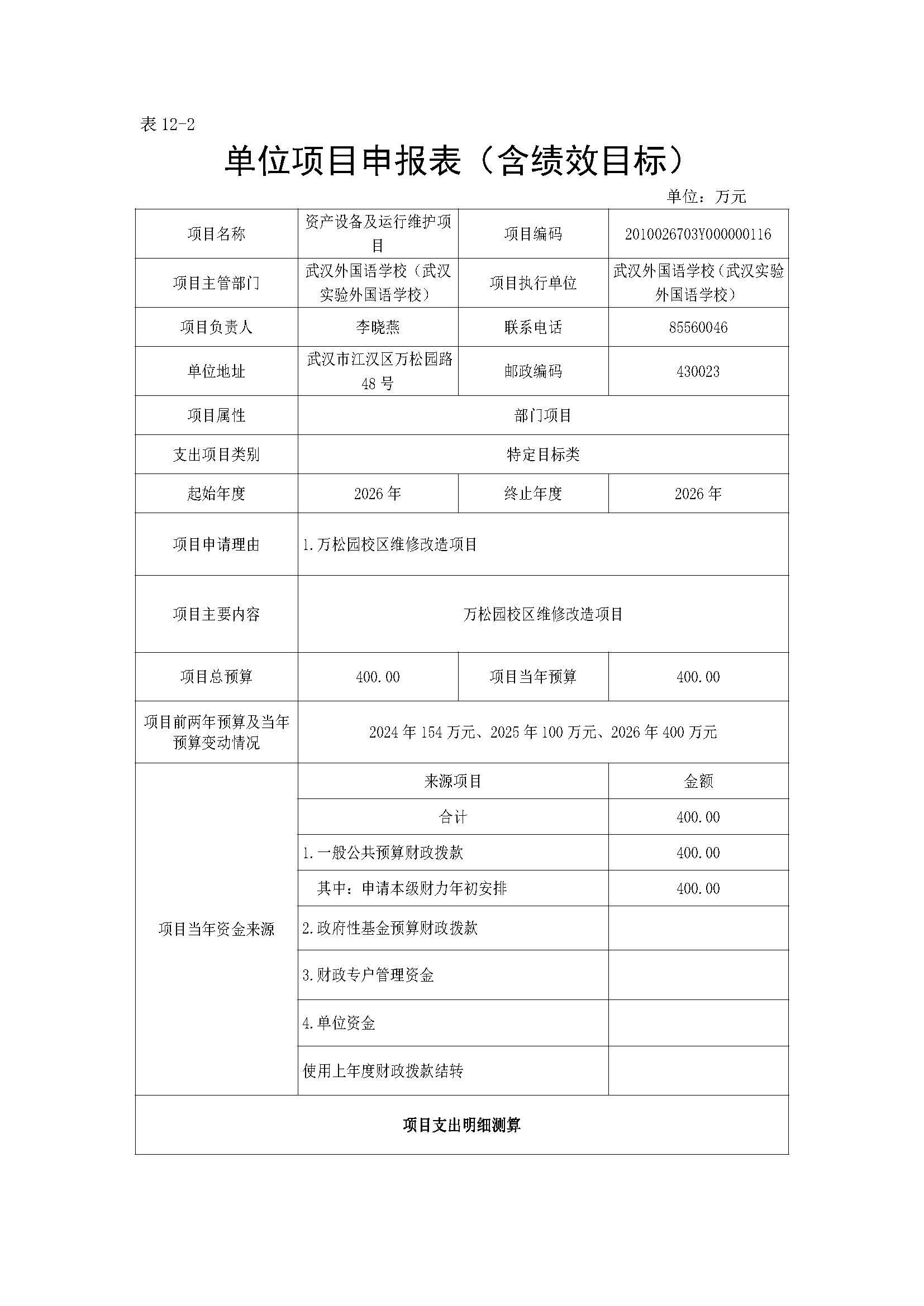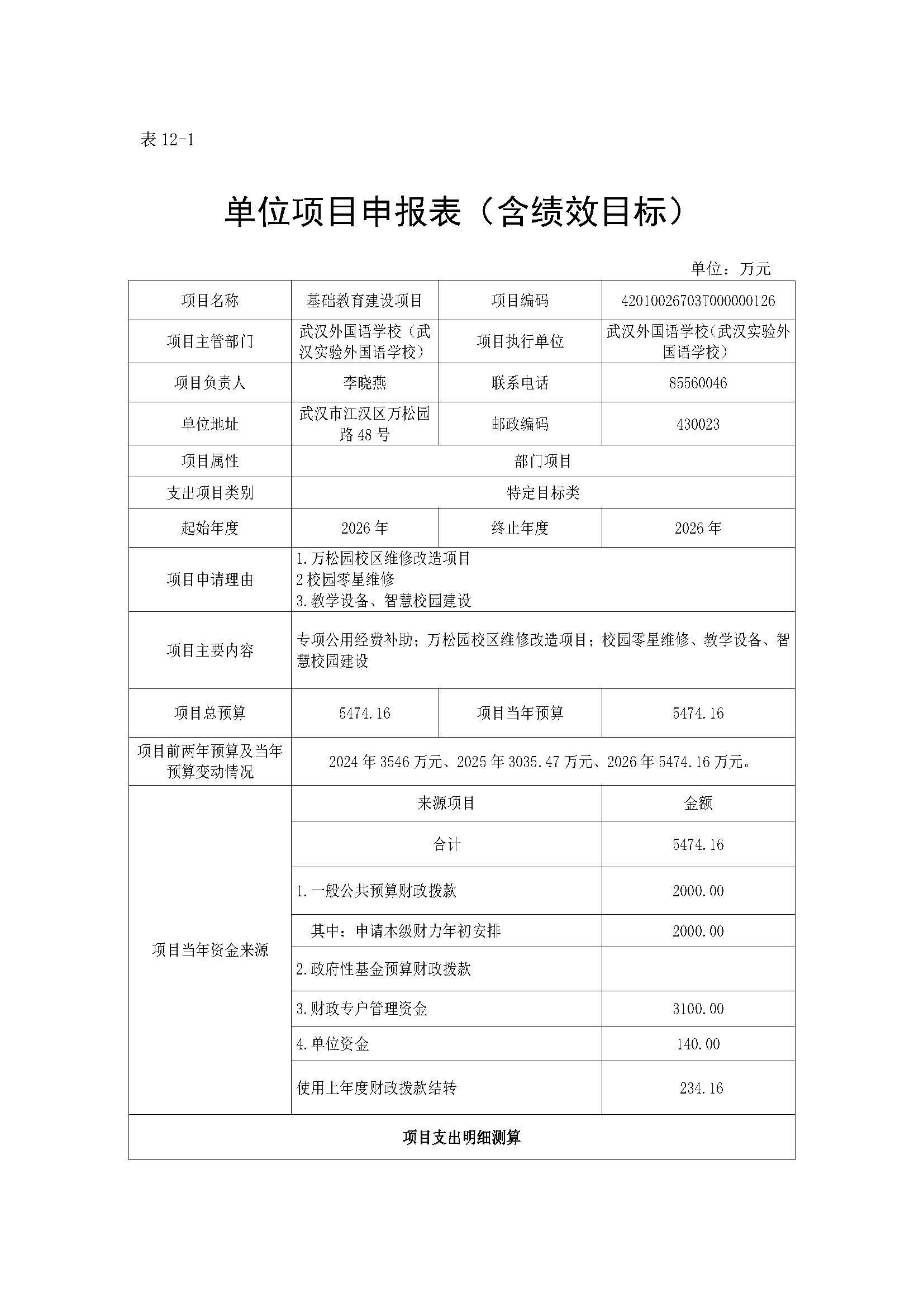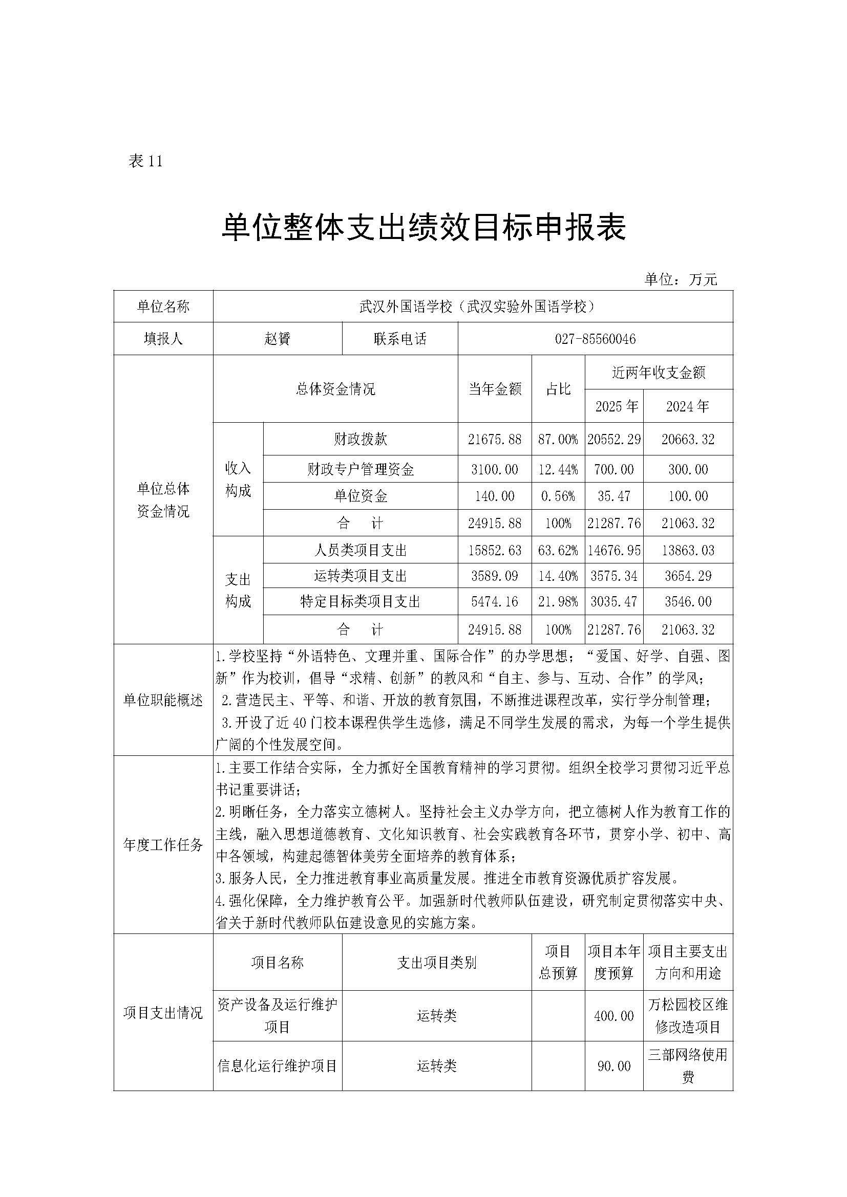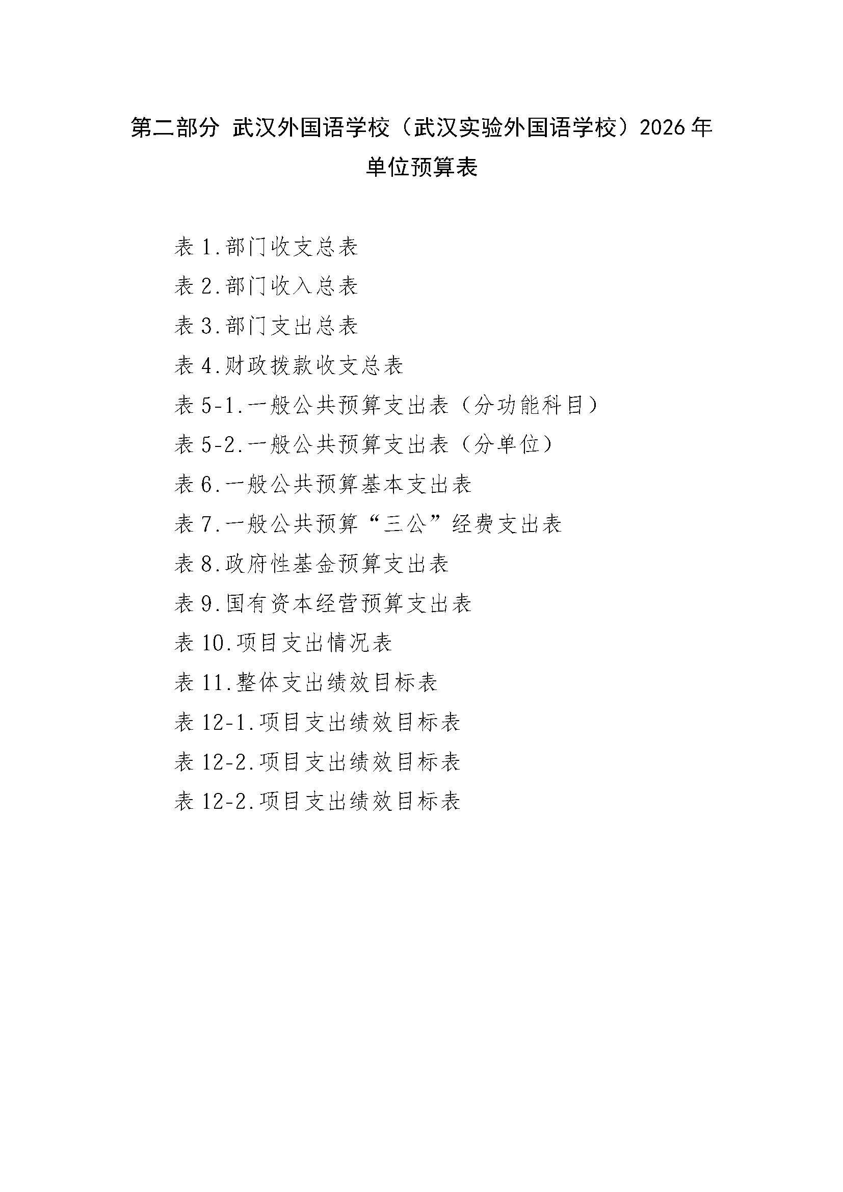 武汉外国语学校(武汉实验外国语学校)2026 年单位预算