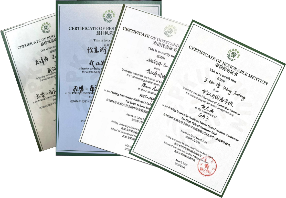 我校在全国中学生模拟联合国大会(PKUNMUN2026)中斩获佳绩